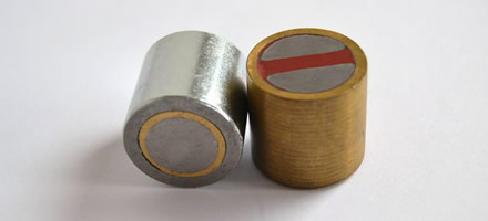 Los imanes se prensan en la cazoleta dentro de un aro de latón aislante. Se pueden realizar también en neodimio con temperatura máxima de 230º cent. En ese caso la estructura es toda de latón